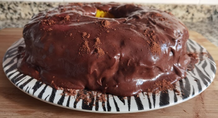 - Se o forno for muito forte, cubra o bolo com papel alumínio e remova após 30 minutos para terminar de assar o bolo.