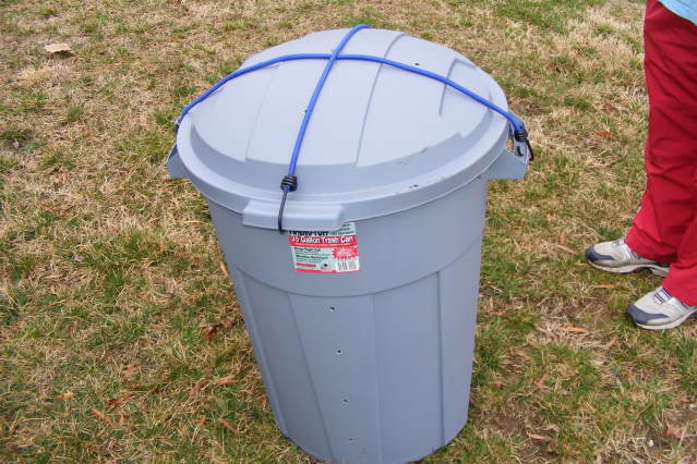 Mantenha a tampa sempre muito bem fechada e bem segura na lixeira. Aqui foram usadas cordas elásticas.