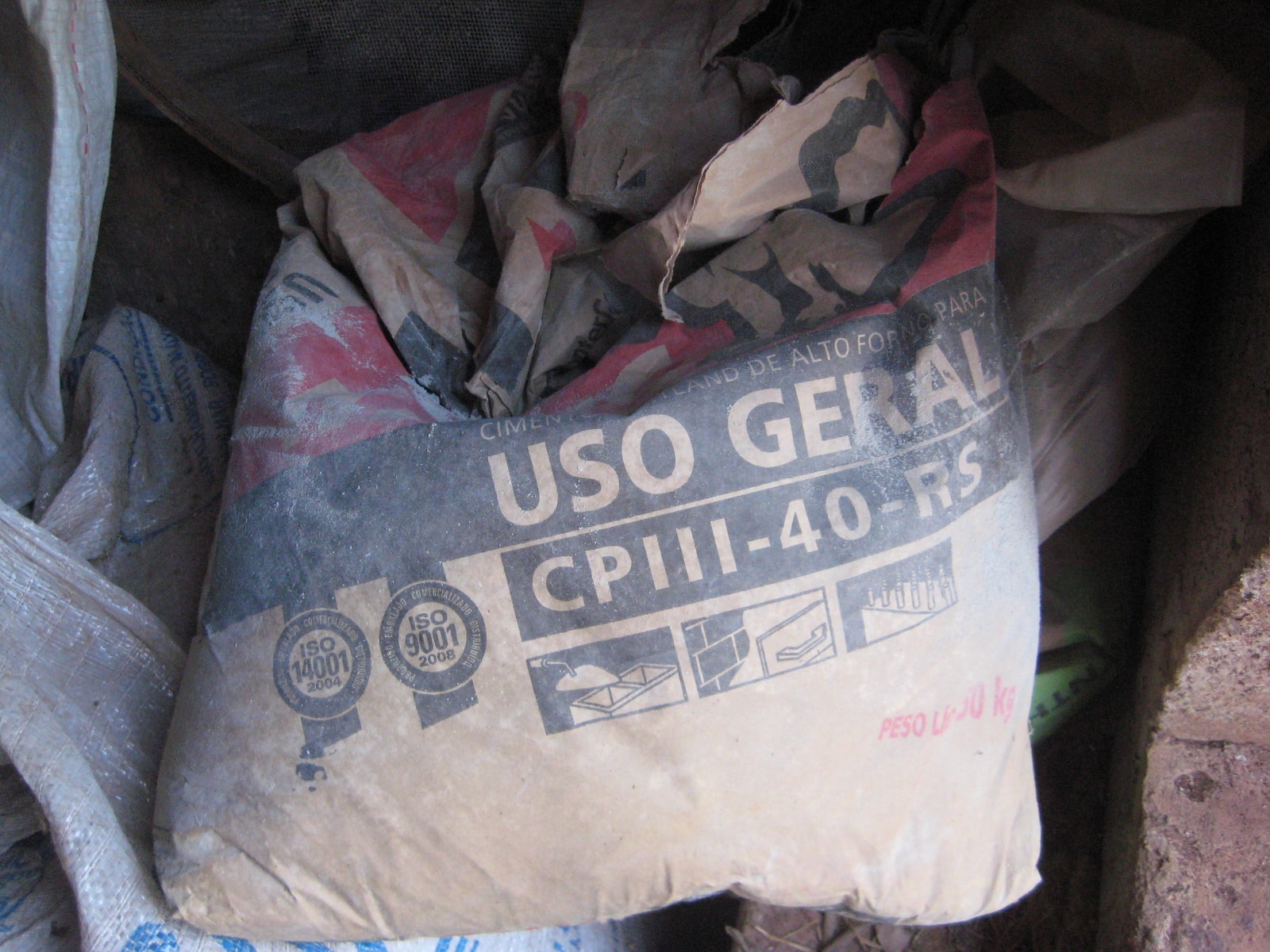 O cimento que sobra e ficou em sacos rasgados ou abertos deve realmente ser usado primeiro, mas idealmente eles devem ser re-ensacados em sacos de plástico ou sacos de lixo pesados muito bem seladas de forma segura com corda ou fita adesiva.