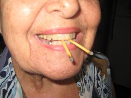 1 – Acenda dois fósforos e apague, após isso, coloque estes entre os dentes e corte a cebola assim…… com os fósforos entre dentes.