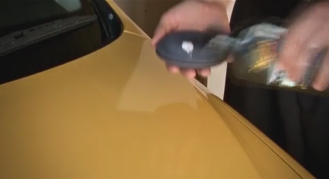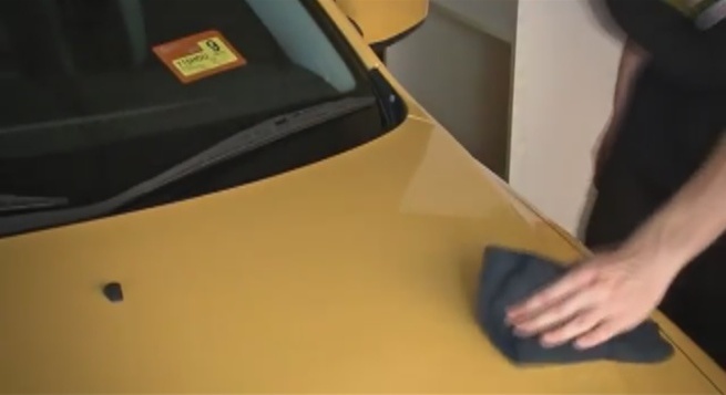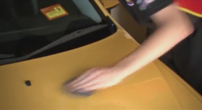 Com a cera em pasta, usar uma esponja de espuma e esfregar muito de leve na cera e passar em 1/4 do capô. Nada mais.