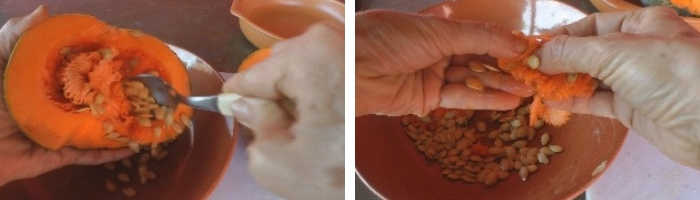 2 – Lavar as sementes de abóbora: