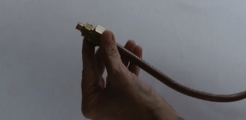 5 – Colocar a união de cobre na extremidade pescoço de cisne. É essa extremidade que vai ser conectada com a tampa da panela e por isso é longa .