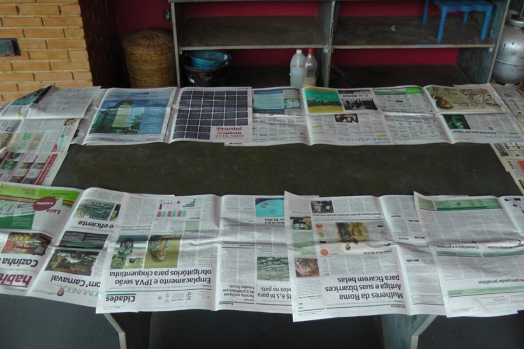 1 – O primeiro que tem que fazer é forrar com jornal velho o local onde você vai fazer a pintura.