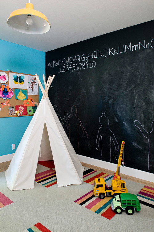 A ideia é poder deixar a casa muito mais interativa e divertida. Com apenas uma tinta e um pincel podemos pintar qualquer pedaço de compensado que temos em casa ou até mesmo pintar diretamente na parede. Fica simplesmente demais!