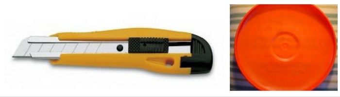 caso tenha uma tampa de plástico duro, use o cutter para remover o centro e fazer a forma de uma moldura. Se você conseguiu outro tipo de aro simplesmente ignore essa etapa.