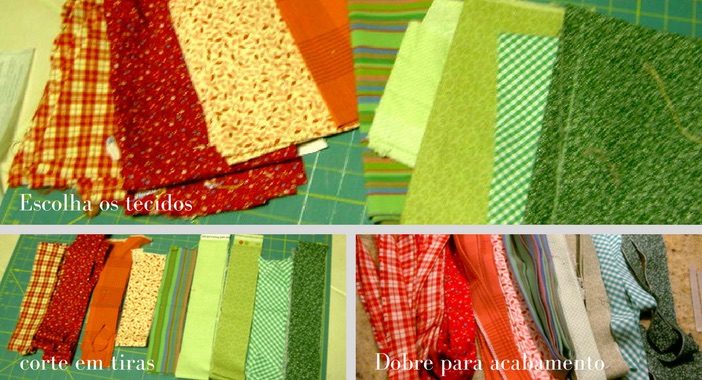 Corte umas 10 tiras, com uns 10 cm de largura , dobre e passe com ferro para dar um bom acabamento nas laterais.