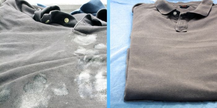 2 – em seguida, Deixe a roupa ficar assim em um local quente (mas não sob calor direto) por algumas horas ou mesmo durante a noite. A temperatura quente fará com que o pó absorva o óleo do tecido.