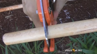 Marca onde devemos cortar. Vamos usar este tipo de cortador porque vai dar um corte limpo. Se não tiver essa tesoura pode usar a segueta. É mais trabalhoso mais funciona.