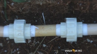 Obs: Essa emenda foi feita com 2 uniões porque era o que eu tinha no momento. Mas pode ser feita com uma luva de um lado e uma união do outro e assim fica um pouquinho mais barato.