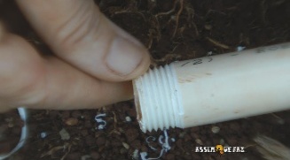 Medir o tamanho do cano, exatamente, que temos que cortar para encaixar com exatidão. Colocar o cano SOBRE a primeira parte da peça para dar comprimento suficiente e permiter enroscar por dentro.