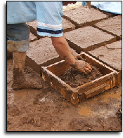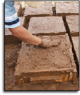 O segredo de um adobe bem resistente é a batida, a pisada.