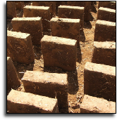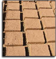 São tijolos feitos de uma mistura de terra crua, água e palha prensada em moldes e secada ao sol. As construções feitas com este tipo de tijolo se tornam muito mais resistente e dá uma excelente sensação térmica ao ambiente. Fresco no verão e cálido no inverno.