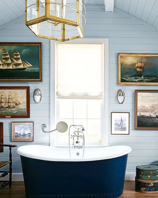 Complete a decoração marinha com arte e decoração de parede que celebrem a vida à beira-mar. Pinturas de paisagens marítimas, fotografias de faróis, mapas náuticos e painéis de madeira com motivos de praia são excelentes escolhas para adornar suas paredes. Você também pode criar uma parede de galeria com uma coleção de artefatos marinhos, como remos, boias de pesca e barcos em miniatura, para adicionar personalidade e charme ao seu espaço.