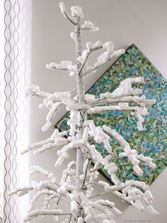 Decore sua arvore de natal com esses flocos de isopor dando uma aparência de neve sobre os galhos.