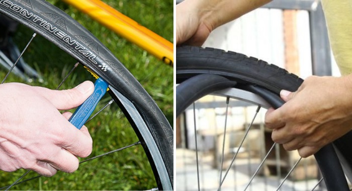 Depois de retirar a câmara, verificamos, passando a mão cuidadosamente pelo interior da coberta, se não há nenhum objeto perfurante ainda preso, inserimos uma nova câmara, encaixar a coberta e continuamos a marcha. Existem também adesivos que nos livrarão de problemas.