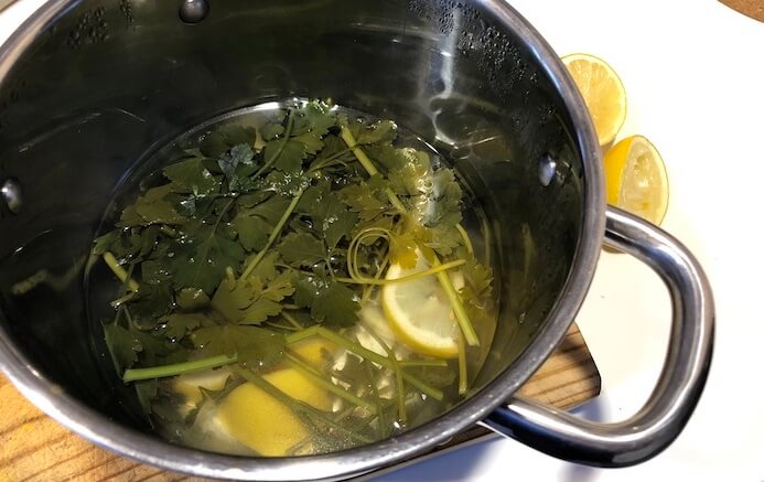 - Adicione um punhado de salsa fresca e o suco de 1/2 limão.