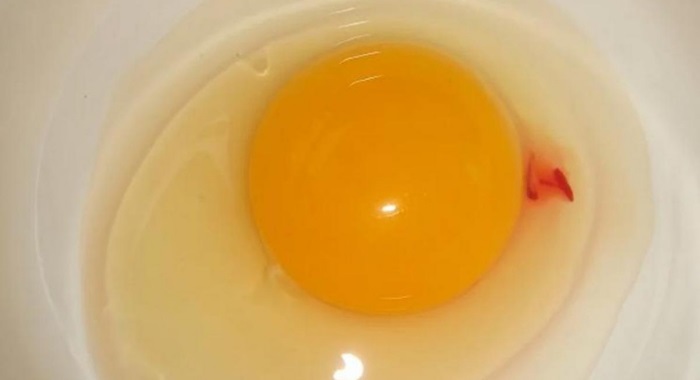 A presença desses vestígios de sangue corresponde à ruptura de um capilar e não implica em nenhum perigo para o consumo humano. Em outras palavras, esses ovos podem ser comidos.