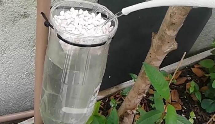 1 – Use uma garrafa de água ou vinho como sistema de auto-rega.