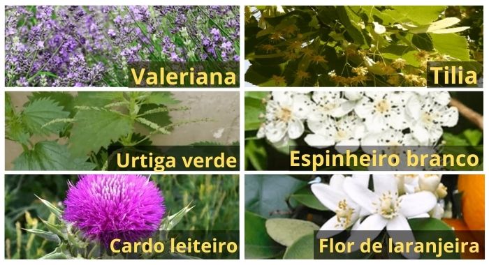 Cardo leiteiro, tília, flor de laranjeira, espinheiro, valeriana, cavalinha, urtiga verde.