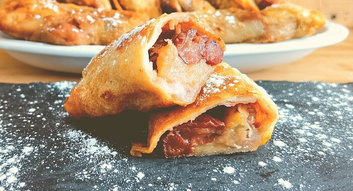 - Coloque duas colheres de sopa de recheio na parte superior dos crepes.