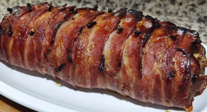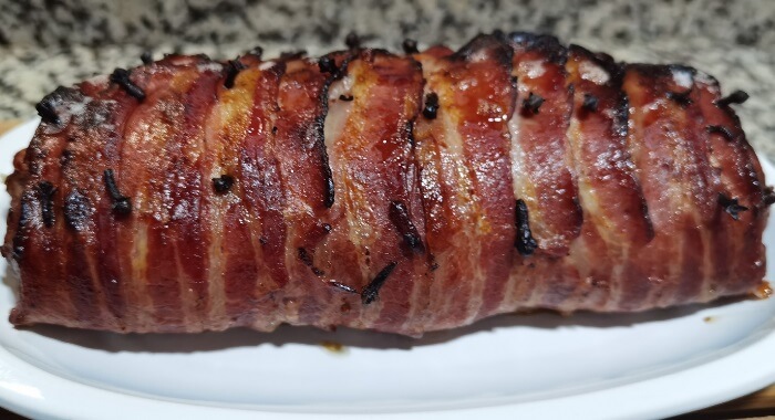 - Coloque as fatias de bacon, montando-as uma sobre a outra.