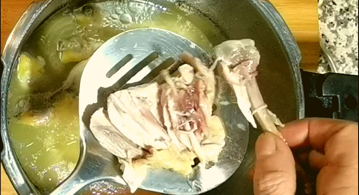 - Quando as coxas estão cozidas, a carne deve ser facilmente separada do osso.