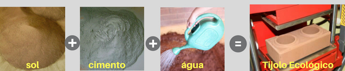 O tijolo ecológico é formado através da mistura de 88% de solo e 12% de cimento, mais agua para unificar a massa e que passam por uma prensa hidráulica, onde recebem uma pressão de cerca de seis toneladas. Dessa forma, não há o processo de queima ao forno, que é usado na produção de tijolos de barro comum, evitando o desmatamento (pois nesses casos a madeira é usada como combustível) e a poluição atmostférica.